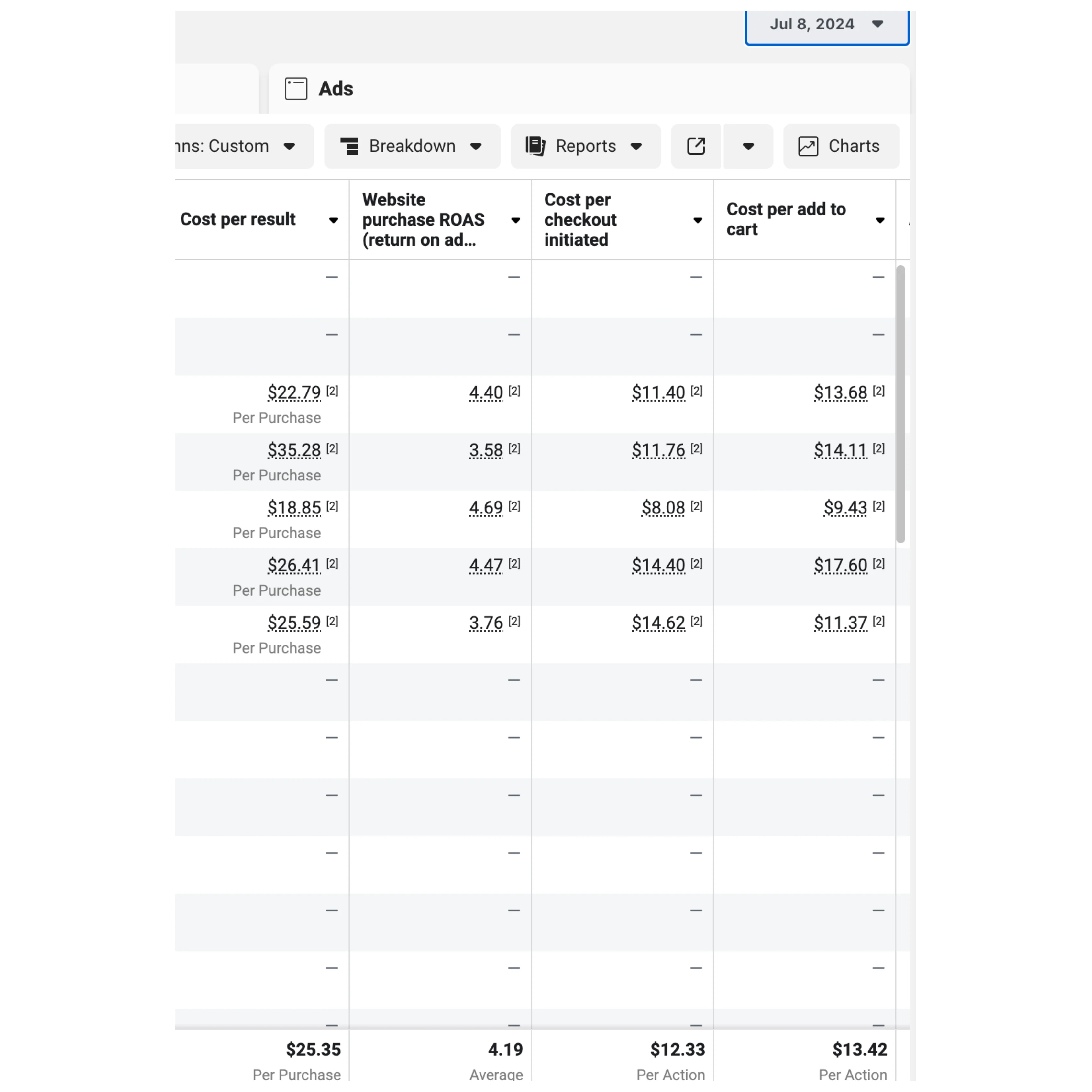 Frequent testing is key to finding optimal CPMs, CPCs, and ROAS quickly. In a competitive market, achieving favorable metrics fast is crucial for scaling. If competitors optimize faster, your CPMs rise, cutting into profits. Test & scale faster and more efficiently with our proven ad templates.